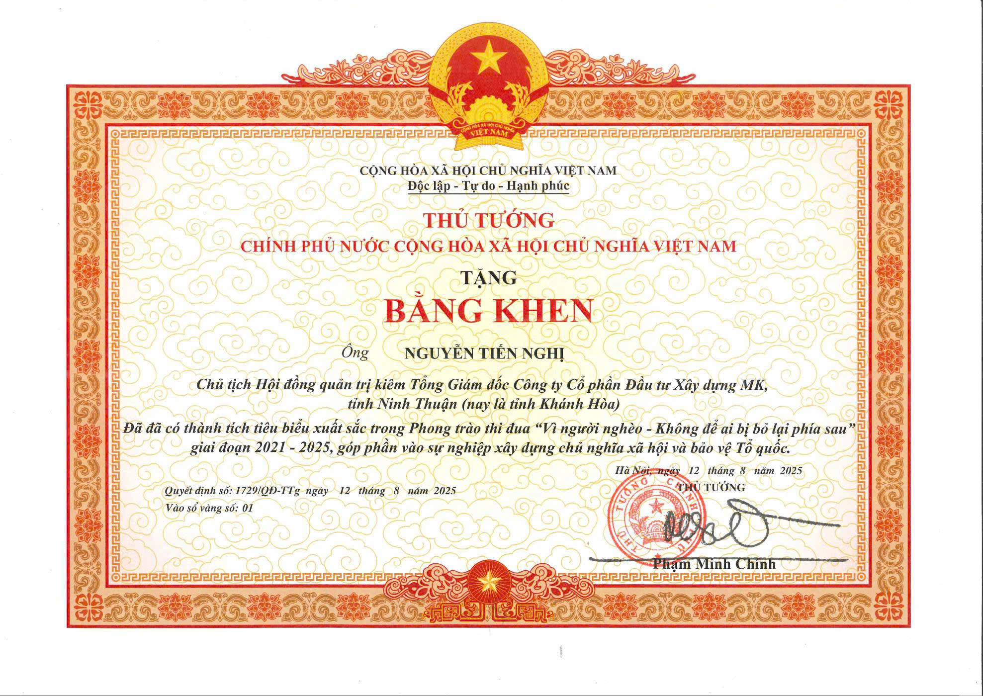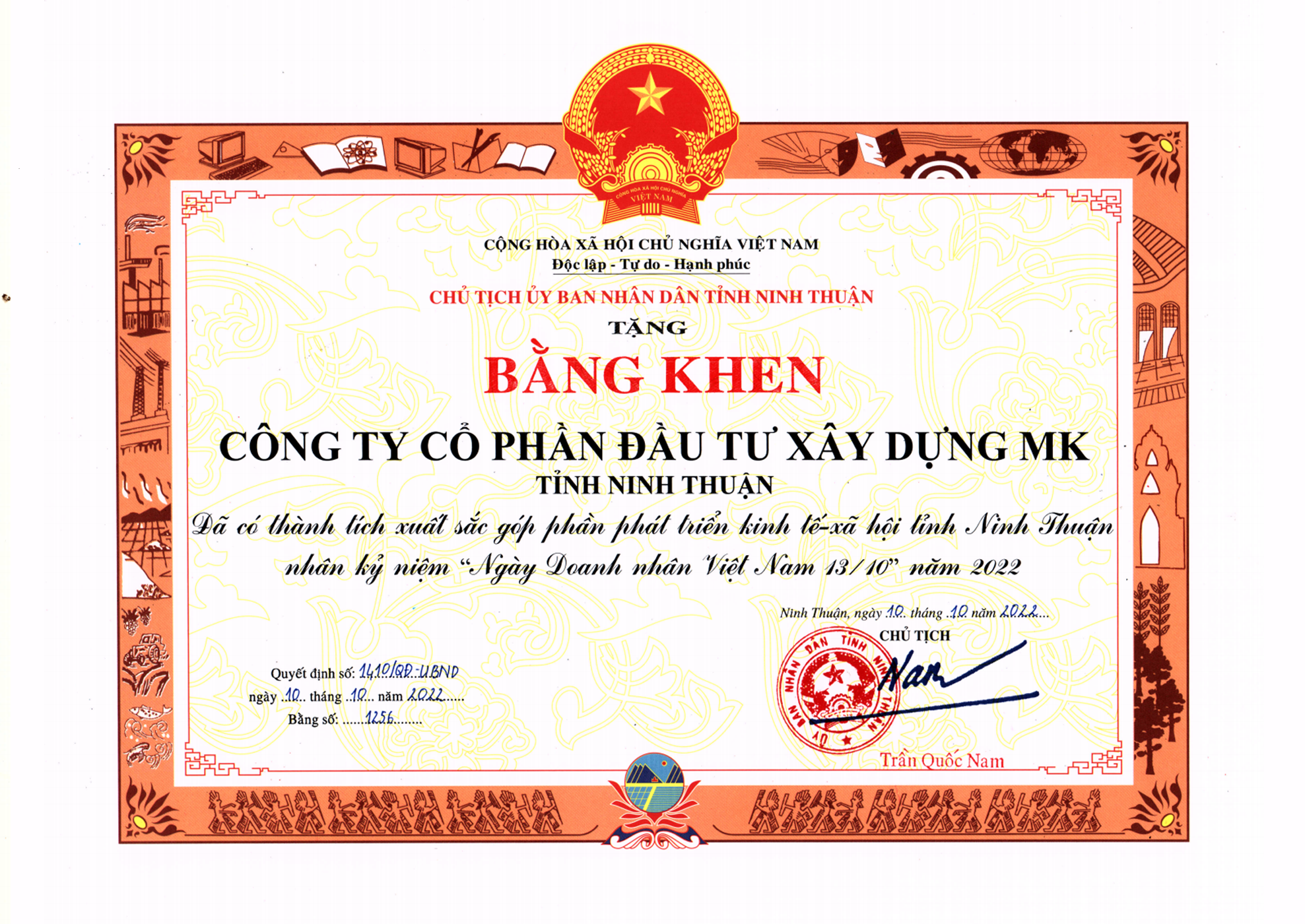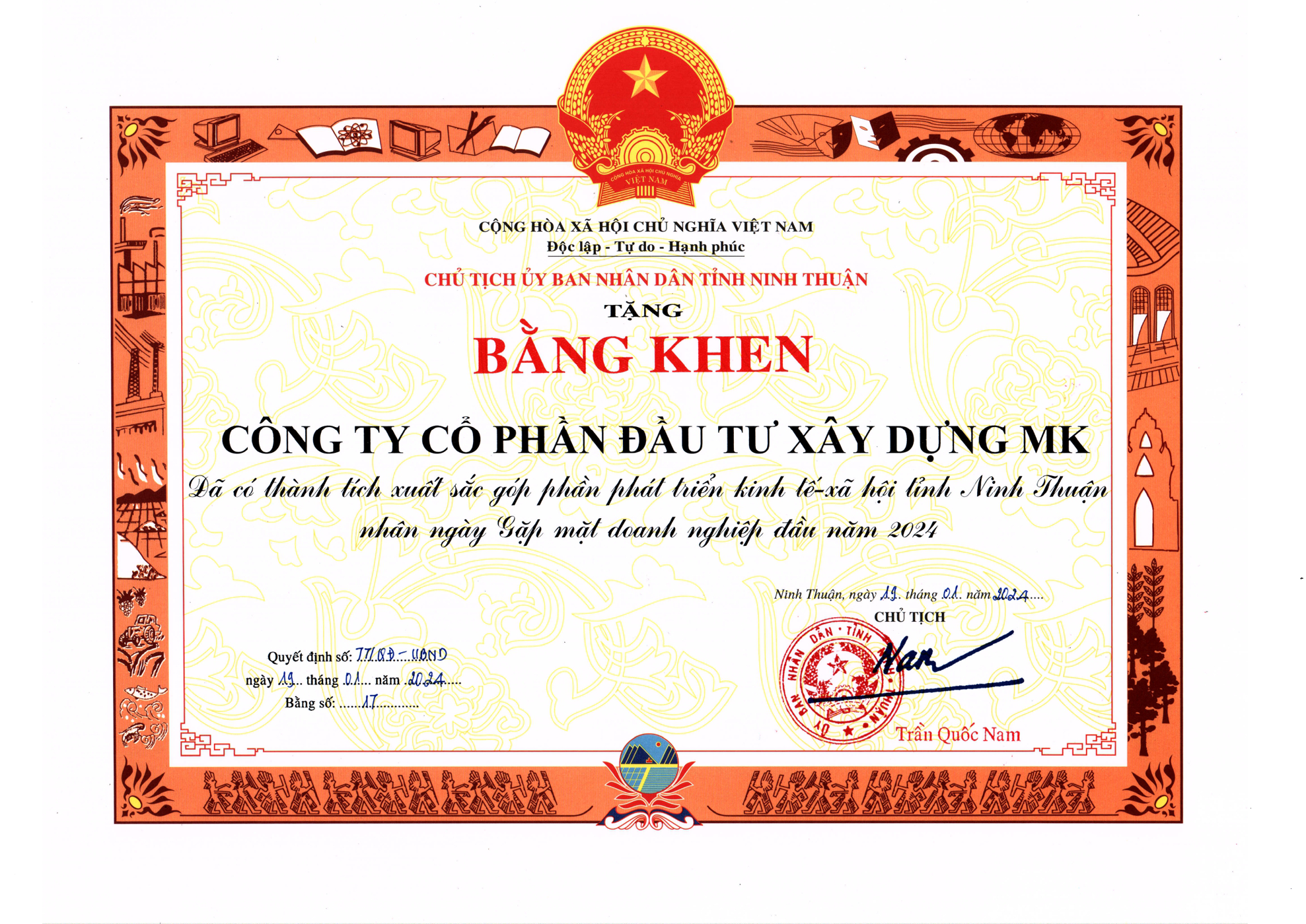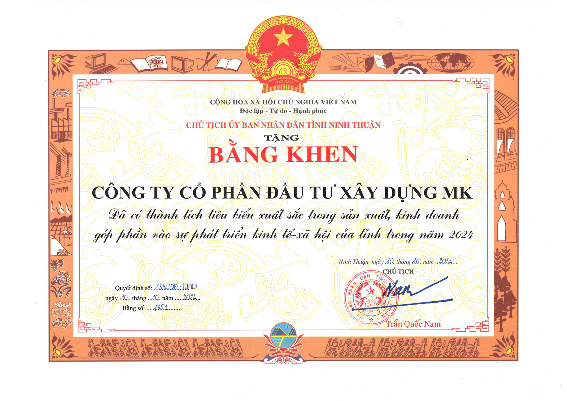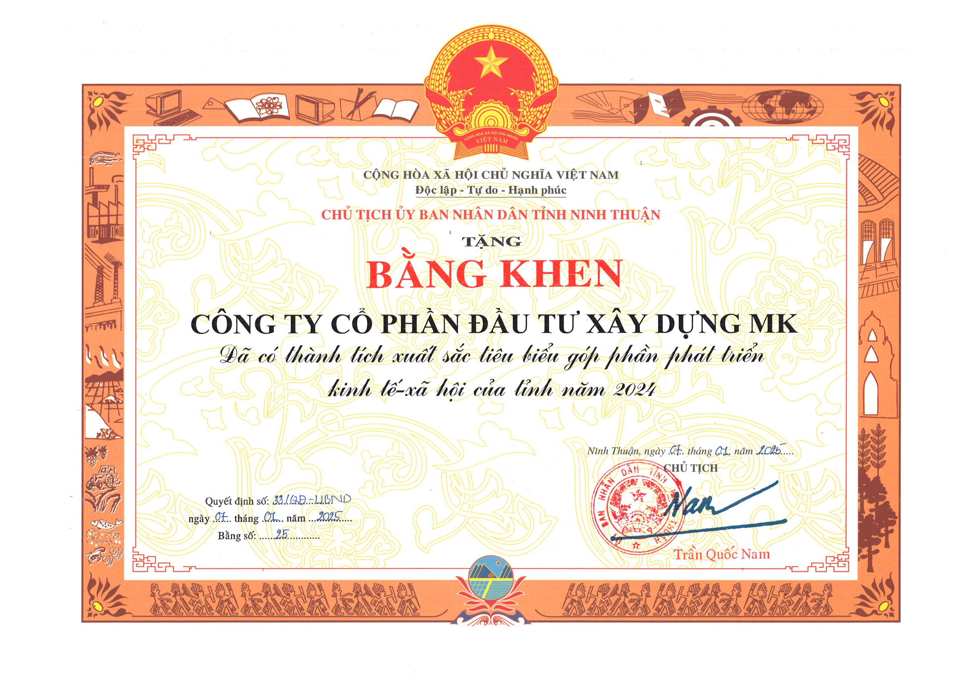 Với tầm nhìn trở thành Doanh nghiệp hàng đầu Việt Nam trong lĩnh vực Đầu tư, Xây dựng, Kinh doanh Bất động sản, Tư vấn Giám sát, Tư vấn Thiết kế, MK luôn mang tới những giá trị thực, bền vững và “Kiến tạo cộng đồng văn minh” qua những sản phẩm, dịch vụ đầy tâm huyết trên toàn quốc, đặc biệt là tại Ninh Thuận.