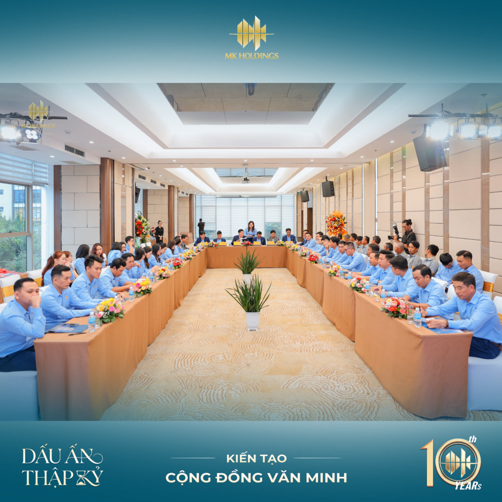 Trong không khí hân hoan và nhiều dấu ấn của một ngày ý nghĩa, sau Lễ Khởi công Dự án Nhà ở Xã hội MK Riviera – CT02 KĐT An Bình Tân, chiều tối ngày 12/1/2026, MK Holdings đã tiếp tục tổ chức Lễ tổng kết kết quả hoạt động sản xuất – kinh doanh năm 2025 và triển khai phương hướng, nhiệm vụ trọng tâm năm 2026, kết hợp Lễ kỷ niệm 10 năm thành lập.