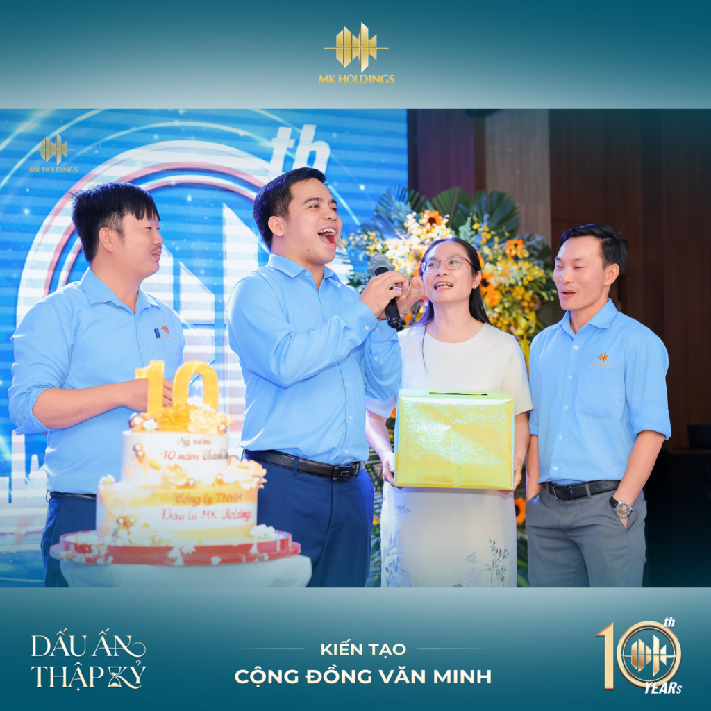 Tiếp nối phần tổng kết, Lễ kỷ niệm 10 năm thành lập MK Holdings đã diễn ra trong không khí ấm áp, trang trọng và đầy cảm xúc – đánh dấu hành trình một thập kỷ hình thành, phát triển và trưởng thành. Đây không chỉ là dịp nhìn lại chặng đường đã qua, mà còn là thời khắc tiếp thêm niềm tin, khát vọng và quyết tâm cho giai đoạn phát triển mới.
